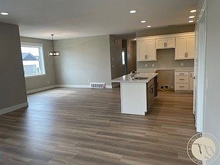 NEW CONSTRUCTION 4-bedroom 3 bath home High-end finishes Anderson windows, James Hardi board siding, Custom kitchen with gas stove, microwave, dishwasher and quartz counter tops. The gas fireplace compliments the open room concept. Covered patio with views of the rims. Full finished basement with 2 bedrooms and 1 spacious bathroom. lots of storage space. House has helical piers. Fully landscaped