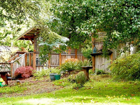 Chalet A-Frame, two story main house, three bedroom one bath with full unfinished basement. Additional 2 bedroom 2 bath manufactured home on property recently remodeled and converted into two vacation rental guest suites (active monthly business income). Horse property with custom barn with stalls, turnout fields, & round pen. Large enclosed outdoor kitchen and lounge, covered bamboo gazebo hot tub and lounging deck - outdoor large screen movie theater with fire-pits & covered storage and dining areas. Protected garden with raised garden beds, fruit trees (cherry, peach, pears, plums and apples, and walking trails.