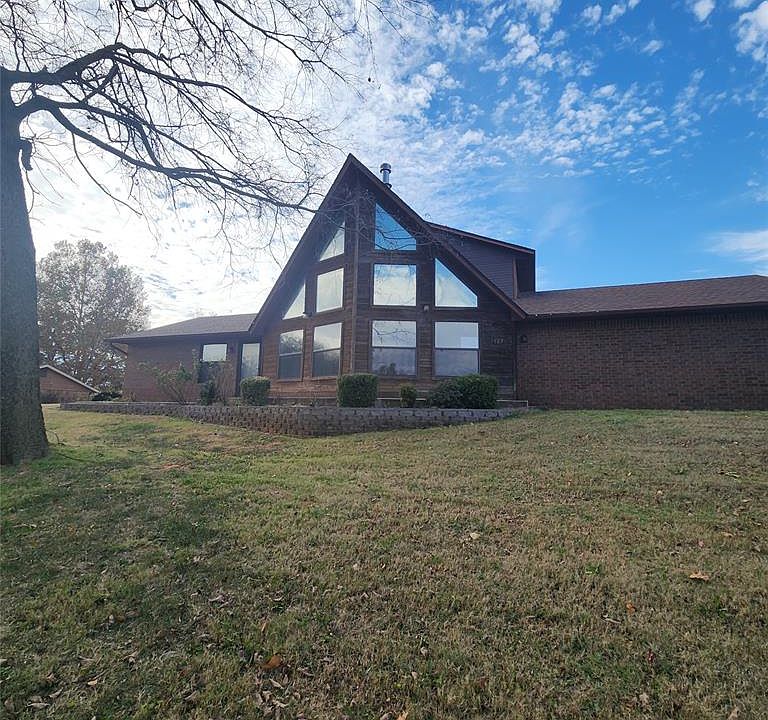 Are you searching for your own rustic retreat to call home? This home, nestled in a quiet and sought after area of Purcell, might just be perfect for you! It is offered AS-IS by HUD. Featuring an A-frame exterior, it showcases a distinctive architectural style reminiscent of a chalet and a charming interior. Inside this 3-bedroom, 3-bathroom home, you’ll discover floor-to-ceiling windows, a cozy freestanding fireplace, and soaring ceilings in the living room. With 1,830 square feet of living space on nearly an acre of land, a tree-lined neighborhood, a workshop that doubles as a two-car detached garage, and an outdoor fireplace, this home offers a serene sanctuary! Home is in need of some repairs, sold AS-IS. Utilities are not turned on so it's recommended to tour during daylight hours. HUD Registered agents are able to submit bids for buyers. Current bidding period is exclusive for owner occupant, non-profit and government agencies.
