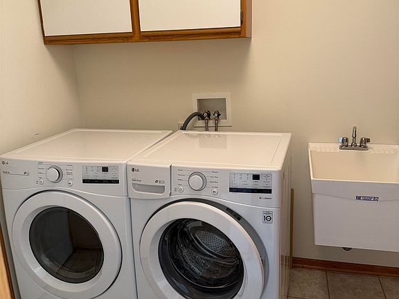 This Ranch Condo has an open concept with Cathedral Ceiling in the Living Room and Dining Area. Gas fireplace in Living Room. Large Kitchen with an eat in area. Plenty of cabinets with quartz countertops. Main floor laundry room. Primary bedroom with a large walk in closet and Primary bathroom. 2nd bedroom with main floor bathroom . Patio doors lead out to a new trex deck and off the deck onto a concrete patio. Unfinished basement with a potential to make extra living space and with plenty of space. Plumb in for a 3 bathroom. 2 stall garage.