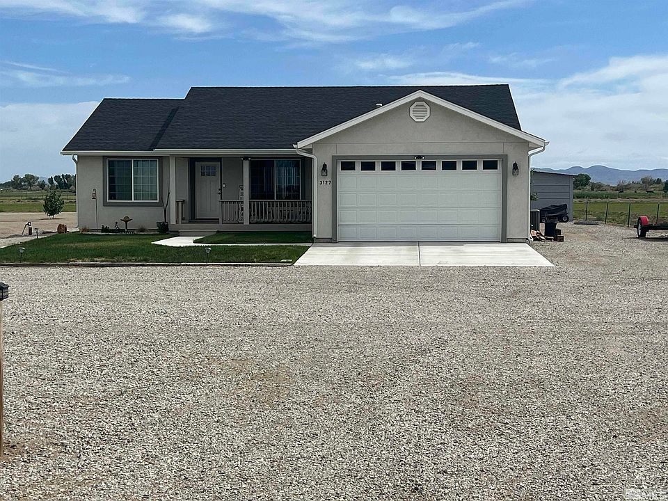 Welcome to this beautiful custom-built open concept ranch on a sprawling 1 acre of land that's ready to move in! Located in a rural setting of Fallon that's close to town, easy access to U.S. Route 95 and the Naval Air Station. This home features 3 bedrooms, 2 full baths, dining room, vaulted ceiling, granite countertops throughout the kitchen and bathrooms, laundry room with food pantry, laminate floors with carpeting in the bedrooms and dining room., The master bedroom features a walk-in closet and a garden tub for your soaking pleasure! You'll also love the mountain views from out back as you relax on your deck while embracing the morning sunshine. The appliances (washer/dryer/refrigerator) were purchased new in 2018. You'll have plenty of room to park 2 cars in your garage or use it as additional storage. The mounted cabinets and shelves in the garage will remain. Outside you'll find an automatied sprinkler system for your front lawn and several water hydrants for your trees or garden. There's also a shed out there to store all your outdoor tools and small equipment. A lawn tractor and lawnmower will remain with the sale of the home. The home also has a private well with filtration system(owned), a Reverse Osmosis system under the kitchen sink for the fridge water and a freshly pumped/cleaned septic tank. Come on out and see what this home has to offer.