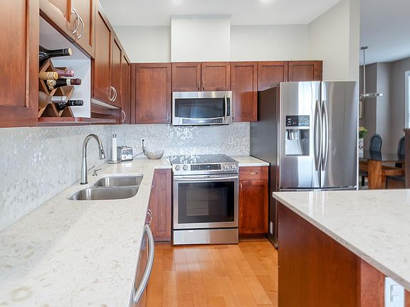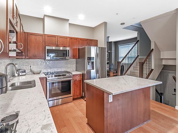 Sharply priced, immaculate 3 bdrm plus rec room(could be 4th bdrm) 4 bathroom townhome with a renovated kitchen, gleaming quartz counters, stylish ceramic backsplash, all upgraded appliances, and engineered hardwood floors!! Upstairs, the primary suite fits all your furniture, the walk-in closet has room for his and her wardrobes plus there are 2 more generous bedrooms and convenient laundry. The accessible lower level offers a great option for out of town guests/family w/ full bath + 4th bedroom/sitting area and direct access to your private fenced yard ideal for kids, pets or entertaining ! A double garage plus extended driveway provides parking for 4 vehicles in an ultraconvenient location-walk to schools, Costco and all of Fremont!