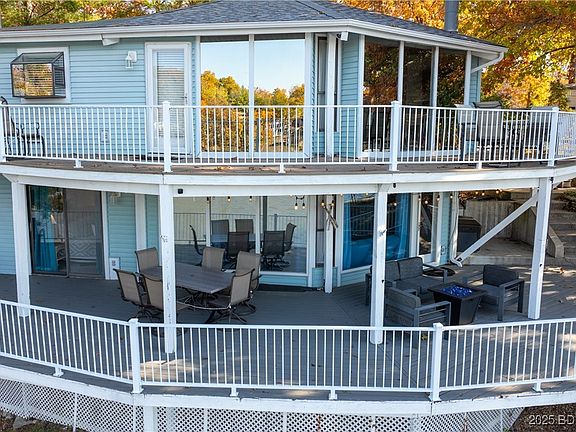VIEWS MATTER - LAKEFRONT DREAM! Discover this incredible aprox.160 feet of shoreline close to the point with deep water and a gentle lot. Featuring 3-beds / 2-baths with 2300 sq. of easy living and inviting floor plan designed for comfort and entertaining—inside and out. Walls of windows on both levels frame panoramic, MILLION DOLLAR VIEWS! Enjoy two expansive decks—one open and one covered—perfect for hosting family and friends. Gentle lakeside yard is ideal for firepit, yard games, and relaxing by the water—truly a rare find! You’ll love the convenience of blacktopped roads, a large flat circle drive with plenty of parking, and just 2 steps to walk into main-level living. ABSOLUTE DREAM DOCK includes two large boat slips, a swim platform, covered PWC slips, storage, a diving board, wet steps ladder; everything you need for endless fun on the water! Located at the 4 MM, you’re close to all the best lakefront restaurants & entertainment. New roof & skylights in 2019. New Dream primary bath, Newer HVAC. This furnished home is ready to enjoy from day one! Rentals allowed. Capture the lake lifestyle you’ve been waiting for—easy, comfortable, and full of unforgettable views.
