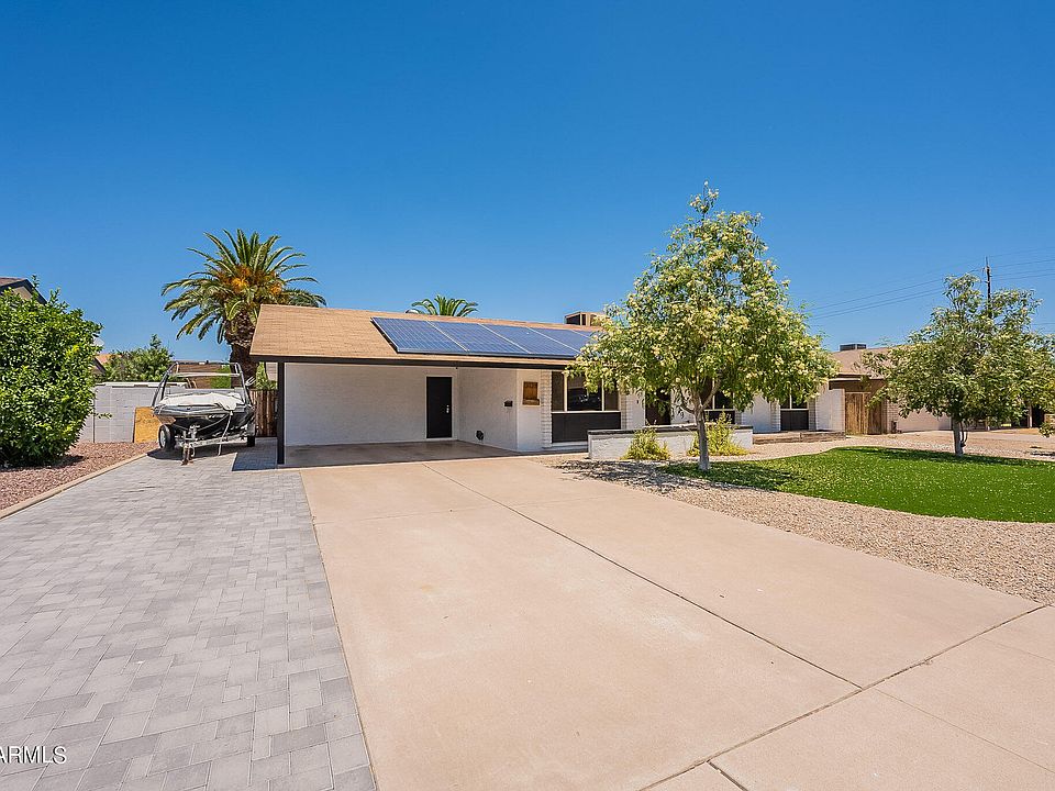 Location & Remodel says it all! Hot zipcode 85028. Only mins from the new/upcoming PV mall. Single level home that has character throughout. Recent remodeling includes: custom built electric fireplace, luxury vinyl plank flooring, cabinets with Quartz Undermount sink, Gas range, new paint inside and out, completely remodeled bathrooms, newer windows, new beautiful french doors and patio off the master bedroom. Has a diver pool with several different fruit bearing trees! Pecan, Apple, Apricot, Peach, and Orange trees. Plenty of space in the driveway with a 2 car carport. A true 3 bed/2 bath with a workshop/laundry room and storage shed. Paradise Valley Schools, NO HOA. Tesla Solar Panels! Currently has renters- tenants lease is until July 31st. Come see this home that feels like paradise