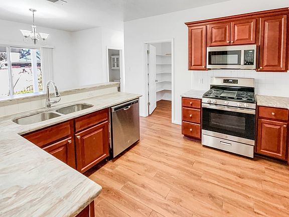 Your dream home is waiting for you! A fireplace and a soft neutral color palette create a solid blank canvas for the living area. This lovely kitchen features a stylish backsplash and generous storage space in the walk-in pantry. Relax in your primary suite with a walk-in closet included. The primary bathroom is fully equipped with a separate tub and shower, double sinks, and plenty of under sink storage. Take it easy in the fenced in back yard. The covered sitting area makes it great for BBQs! Make this beautiful home yours. Owner pay for water and trash
