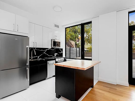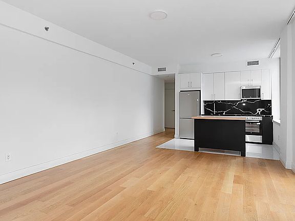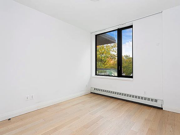 This model 1 bedroom, 1 full bathroom unit features large expansive windows throughout the unit paired with light oak finished wide hardwood floors. The open concept layout features an open kitchen with exquisite black stone paired with a versatile butcher bar island. A stainless-steel package includes a dishwasher, microwave, 4 burner range and fridge. The unit comes complete with central heating and cooling as well as additional heating from radiators located in the living room and bedroom: Thr living room has entry to ia massive private patio perfect to create your own oasis and perfect for entertaining. Tenants have the option to use the provided heat or add additional heat source for their paid utility.