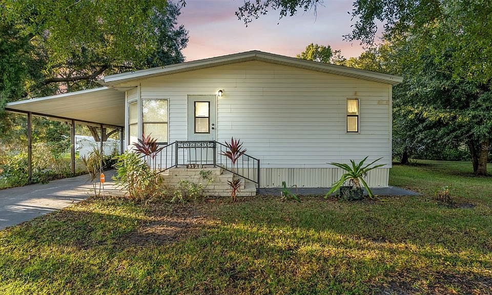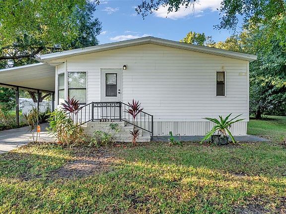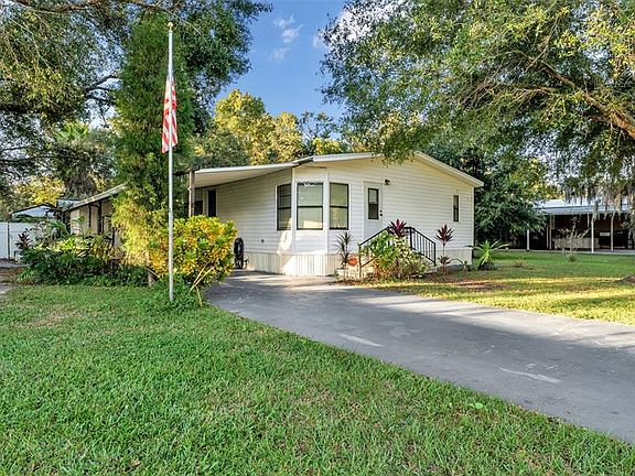 Under contract-accepting backup offers. Adorable North Lakeland manufactured home! With some TLC, this property has lots of potential! New Water Heater 2022 and Roof was replaced 5 years ago. This spacious 3-bedroom, 2-bath double-wide, built in 1989, offers 1,512 sq. ft. of living space on a generous 0.26-acre lot with beautiful trees providing plenty of shade. Enjoy peace of mind—this property is not in a flood zone and has no HOA! Inside, you’ll find a large, bright sitting room filled with natural light from multiple windows, and a kitchen with ample cabinetry and included appliances—refrigerator, dishwasher, and oven. A washer and dryer are also included and conveniently located in their own laundry closet. The primary suite features an en-suite bathroom with dual sinks, a large soaking tub, and a separate walk-in shower with a built-in shower seat. Ceiling fans throughout add comfort, and double doors open to the backyard, offering great potential for outdoor enjoyment. A carport provides covered parking. Conveniently located just minutes from I-4 and US-98, shopping, dining, Walmart, Lowe’s, the mall, and Bonnet Springs Park—plus less than 40 miles to Disney and other major Central Florida attractions. This home has so much to enjoy! Seller is also offering a $15,000 credit towards carpet replacement, repairs, buyer closing cost and or buy down.