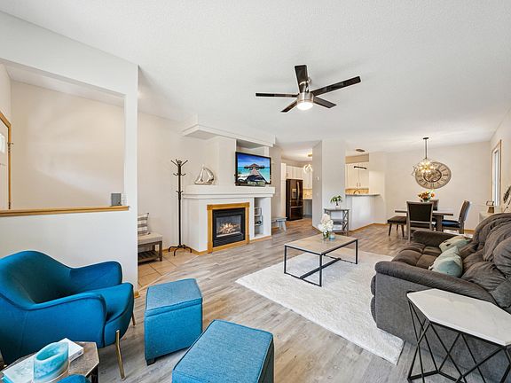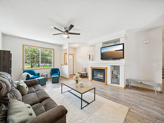 Welcome Home & get ready to be wowed in your updated & upgraded end unit in Savanna Oaks South. Great room with new plank flooring, gas fireplace, remote ceiling fan and large dining space, Granite bar seating area, Open Kitchen with new soft close & pull out shelving cabinets, Whirlpool appliances, Quartz counters, Marble backsplash, under cabinet accent & Modern lighting fixtures. Spacious mudroom & half bath with new marble vanity and lighting. Upper level features fabulous oversized Primary bedroom, walk-in closet and private entrance to bath with double sink vanity. Second generous sized bedroom and convenient upper level laundry room with pedestal front loading washer & dryer. Bonus Loft is very versatile for an office, exercise or perhaps play area space. Newer mechanicals and just freshly professionally painted neutral color throughout. So no work here, just relax on your south facing private fenced in patio. Note: Excellent location close to trails, parks, Carver lake, shops, restaurants, Lake middle school and East Ridge Highschool.