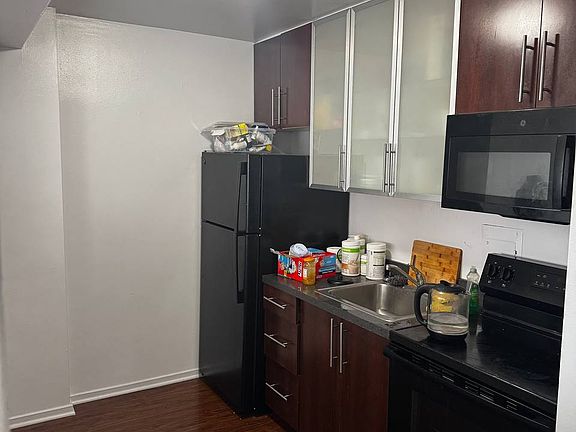 Hardwood floors throughout, large windows with plenty of natural light, modern kitchen, and clean updated bathroom.