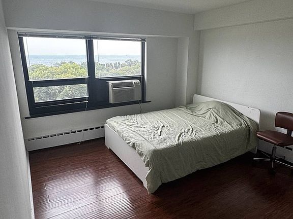 Bright and spacious 2-bedroom apartment on the 11th floor at 3130 N Lake Shore Dr, Chicago, IL 60657, featuring beautiful Lake Michigan views from both bedrooms.