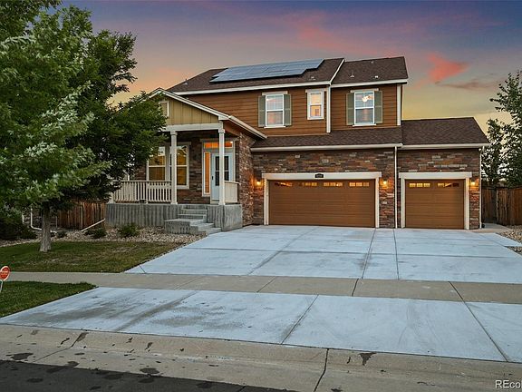 Gorgeous home in the coveted The Conservatory community with a total of 6 (Yes 6) bedrooms, 5 bathrooms and a 3 car garage. Spacious kitchen with included pantry and stainless steel appliances. The main floor features an open floorplan where the kitchen, dining area and living room flow seamlessly together making it great for gatherings. Follow the stairs to the second floor to find a large primary bedroom with a spacious 5-piece bathroom featuring dual vanities, soaking tub and a large walk-in closet. The upper floor also includes 3 additional bedrooms, 2 full baths and a loft. The basement has been professionally finished and includes 2 bedrooms, a modern 3/4 bathroom as wells as a bonus room and an exercise room adding to the usable living area. The house backs to open space. The backyard has a very spacious deck measuring about 17 X 23 feet with built-in grill and gridle making it a great area to relax or entertain guests. Property offers easy access to e-470 and is only a few minute's drive to the Southlands shopping center where you will find dining, shopping and entertainment. The community offers access to a clubhouse and pool as well as open parks and a trail system. Property backs to the Plains Conservation Center. Driveway is about two years old. Property is less than half a mile from Aurora Frontier K-8 school. Solar panels are not being purchased nor are on a typical lease so they have no loan or lease payments. They are on a "20/20" plan agreement. The panels are to stay on the property for 20 years from the date of installation (installed around 2015) and the property owner pays for solar panel electricity used at a 20% discount.