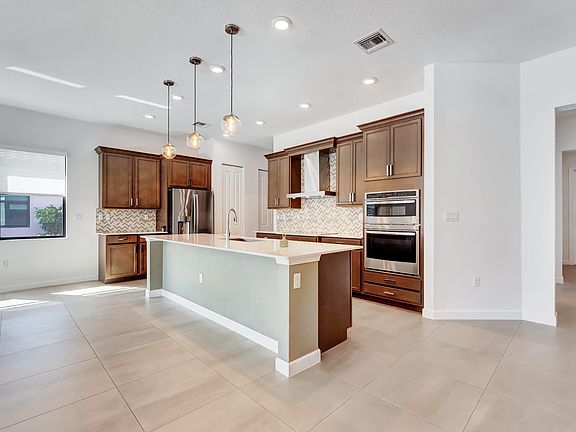 Welcome to your dream home! This one-story lakefront residence, built in 2020 on a premium lot within a gated community offering resort-style amenities, blends elegance and comfort. Featuring tray ceilings, designer lighting, and tile & wood flooring throughout, the open layout highlights a spacious kitchen with upgraded appliances and a three-panel slider leading to a backyard oasis with a pool, spa, and marble decking overlooking the lake. Additional features include hurricane-impact windows, electric blackout shades, a den with built-in cabinets, and a primary suite with a custom closet fit for a princess. Complete with backyard with turf backyard, two-car garage with epoxy flooring and shelving, this home offers the perfect mix of sophistication and convenience.
