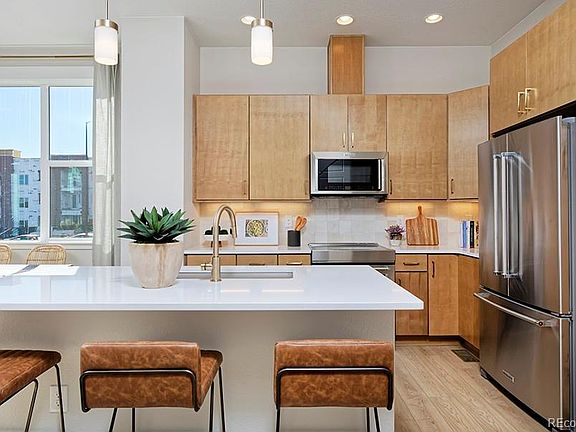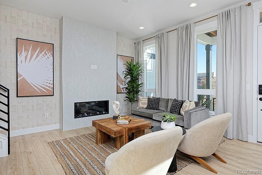 Modern New Home in the Heart of a Historic Cultural Hub, Close to Denver’s Best Restaurants! This beautifully designed 2,078 sq. ft., all-electric, 2-story townhome offers the perfect blend of contemporary comfort and timeless character. Featuring 4 beds and 4.5 baths, this home boasts an open-concept floor plan ideal for both entertaining and everyday living. On the main level, the spacious kitchen shines with a center island and stylish finishes, flowing seamlessly into the living area with a cozy fireplace. Step outside to enjoy Colorado’s sunshine on your front porch or relax in the privacy of your fenced yard. Upstairs, the primary suite is a peaceful retreat featuring a private deck, perfect for morning coffee or evening reading, as well as a luxurious ensuite bath with a double vanity, a floor-to-ceiling tiled shower with bench, and a private water closet. This floor also includes a laundry room and two additional bedrooms, each with walk-in closets and their own full baths. The finished basement offers a large rec room, an additional bedroom, and a full bathroom, ideal for guests, a home office, or multigenerational living. A 2-car garage adds ample storage and convenience. Located in Loretto Heights, one of Denver’s most iconic historic campuses, where rich architectural legacy meets modern community living. Once home to the Loretto Heights College, the area is being thoughtfully reimagined to preserve its cultural roots while offering schools within walking distance, parks, bike trails, shops, restaurants, and access to public transit. Within minutes to Downtown Denver, Englewood, and shopping at Rive Point @ Sheridan. Built by Thrive Home Builders, you’ll also enjoy the peace of mind that comes with a Builder warranty and low maintenance, making homeownership simple and stress-free. Photos shown are of model home with similar finishes, but not of the actual home. For more information, call 303-332-3797 or email eschwaderer@thrivehomebuilders.com.