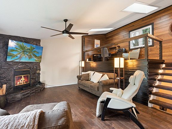 This beautiful updated home is tucked onto a 3/4 acre fenced & gorgeously landscaped lot and includes a rare 4 car garage. This home was recently remodeled to include an open great room with a brand new kitchen including custom cabinets, quartz counters, large center isl & S/S appliances. A new hardwood/laminate floor extends through the entire great room area. There is a striking loft overlooking this area with a custom railing and new carpet. A skylight also highlights this area. An almost new 14x26 maintenance-free deck overlooks the private back yard. The main level features a quaint family room with wood walls and access to the garage. The spacious main floor bedrm suite includes a walk-in closet & a newly remodeled ceramic tiled full bath. There is a large foyer that features a custom built-in wood locker system with a built-in bench. The 3rd level features two additional bedrooms and a remodeled ceramic bath with a walk-in shower. Come home and relax in the picturesque yard.