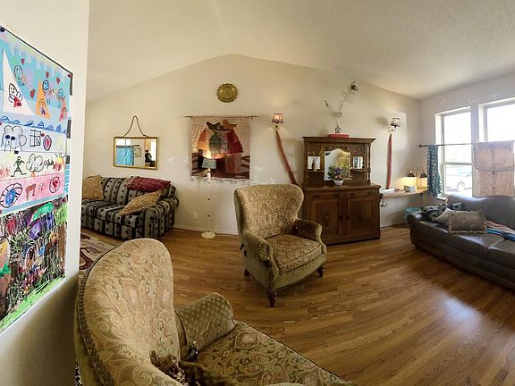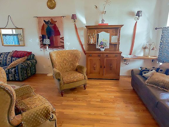 EXQUISITE ADOBE-STYLE home boasts 4 bedrooms and 2.5 baths, offering spacious living and thoughtful design. All items in home convey! The classic wood flooring sets a timeless tone in the living dining combo area, accentuated by a cozy fireplace. The kitchen, with an adjacent eating area, provides a view into the expansive backyard. Upstairs, the bedrooms are neatly tucked away, w/ the master featuring double sinks, a separate shower, a garden tub, and a walk-in closet. The property also includes a 3-car garage with access to the backyard, providing ample space for RVs and other recreational vehicles. A balcony adds a charming touch, while the very large xeriscaped backyard, walled in for privacy, features both covered and open patio areas for outdoor enjoyment. This home has it all!