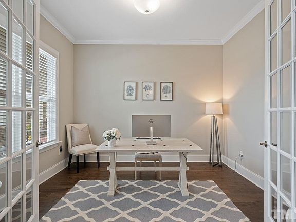 What an opportunity to find an absolutely stunning home on a .33. acre premium lot backing up to protected woodlands in Apex & nestled on a cul de sac. The southern covered porch welcomes you into a luxurious first floor, loaded with natural light, tree views & custom woodwork. Plenty of room for guests & extended family w/guest suite down, an entertainer's dream gourmet kitchen, great room w/FP & 3 car garage. 1st floor Master Suite & the most amazing spa bath. 5 Beds/4.5 baths/Bonus/Office/Dining room.