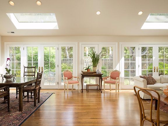 Reminiscent of a wonderful Cape Cod bungalow, this most appealing single story home will instantly make you feel at home. Hardwood floors, vaulted ceiling living/dining room, open kitchen family room plus four bedrooms, three and one half bathrooms. This clean design makes for easy living indoors and out. Lovely back yard backs up to a greenbelt. The front yard is totally fenced. Skylights, french door access to the back yard, two fireplaces and a separate laundry area. Tucked away from the street, this lovely home with a formal entry and a double car garage will fit the needs of all.