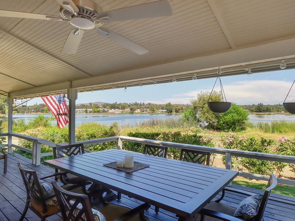 This stunning home offers rare lakefront living on Cameron Park Lake. Enjoy direct access through your private gate, with a readily available lake pass from the Community Services District. The lake features recreation facilities, a swimming area, picnic areas, gazebo, restrooms and a scenic walking path that surrounds the lake. Inside, a formal entry leads to the living room, dining area, and kitchen all with lake views and access to a covered deck. Fully updated within the past 5 years, the home showcases a light, neutral palette. The kitchen includes new cabinetry, quartz countertops, stainless appliances, an island, and a breakfast bar for four. The ground-floor primary suite has access to an enclosed deck, a walk-in closet, an updated bath with new cabinets, quartz counter top and tiled shower. Upstairs, a spacious loft is perfect for an office or relaxation, with TV and sound system included. An additional bedroom and updated bath with new cabinets and tile finishes complete the upper level, with more windows framing the lake. The upstairs bedroom, loft and stairs have carpeted flooring, and the remainder of the home has vinyl plank flooring that appears to be wood. Landscaped grounds with automatic sprinklers surround this exceptional home.