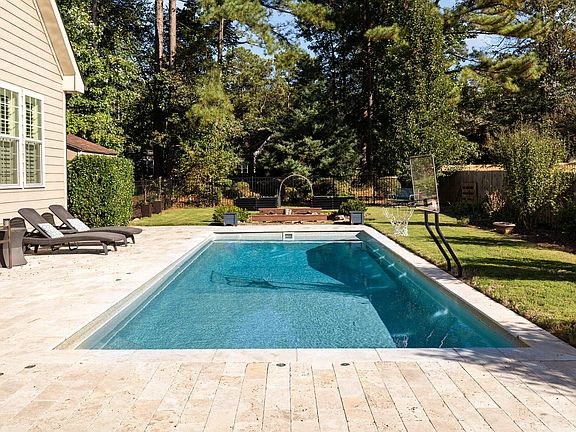 Looking for a convenient location, a house to roam in and a backyard retreat? This home has it all! Built by custom builder, Dogwood and Company! With easy access to 540 and just 10 miles from Raleigh center, you'll have easy access to everything in the Triangle. This home offers over 4300 square feet of versatile living space, with 9 foot ceilings, 8 foot doors and site-finished hardwood floors that bring you through the second floor large hall, you'll feel the quality throughout! There are 2 primary bedrooms! Both the first and second floors give you a primary with large walk in closets and soaking tubs! A large kitchen with gas stove and oversized island make this a great space for both preparing the meal and also sharing it with those you open your doors to! The large pantry adds to the function of this space, with lots of storage for every kitchen lovers dreams. The living room has beautiful built-in shelves that surround a gas fireplace for added beauty and warmth to create perfect cozy days at home. Built-in ceiling speakers in the kitchen, dining, living room and screened porch add to your ability to create the perfect experience for any occasion! Each bedroom has its own full bathroom and large walk-in closets, to make every guest or family member happy! The second floor also offers a large media room with built-in speakers in the ceiling. And if that isn't enough space, there is a third floor with two spaces to use as flex space, office, or a retreat from the rest of home. It is complete with its own bathroom! Outside you'll find an inground salt water pool surrounded by travertine decking that adds ideal beauty and function to your outside oasis. Garden beds, fire pit, and shed complete this outdoor space! Come home to Constance Cir!
