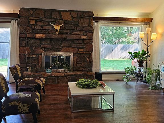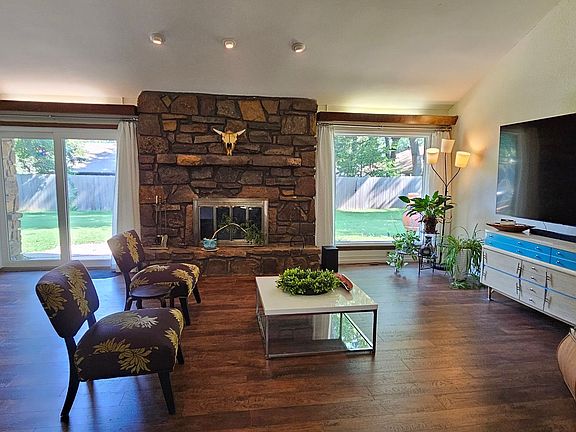 Beautiful quartz counter topsBuilt-in shelvingBrand-new remodelLarge entry wayStone fireplaceNew sliding glass doorsDining space