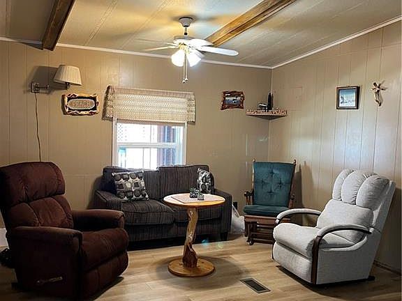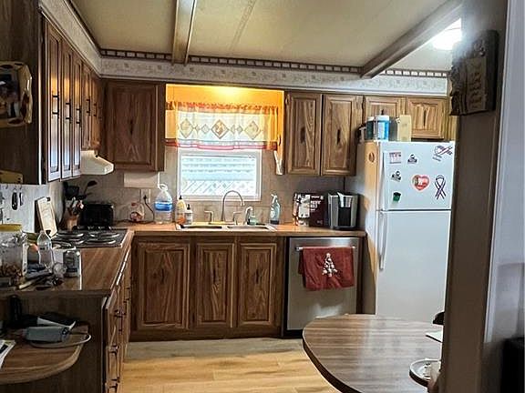 Nice 2 bedroom, 2 bath mobile home on an owned lot with a garage that has a workshop attached. There is a patio out back for entertaining, and also a home Generac generator added to the mobile in case the power goes out the generator will come on. There is a tankless hot water heater that has been installed for continuous hot water. Mobile comes mostly furnished. The primary bathroom has a nice size walk in shower. There is an extra area for extra living space. The roof is metal and about 5 years old. Two years ago, the plumbing was updated, floors replaced and a new HVAC system. And that's not all the driveway was coated, and front and back door have keyless entry. There have been several updates to this property, it is a must see.