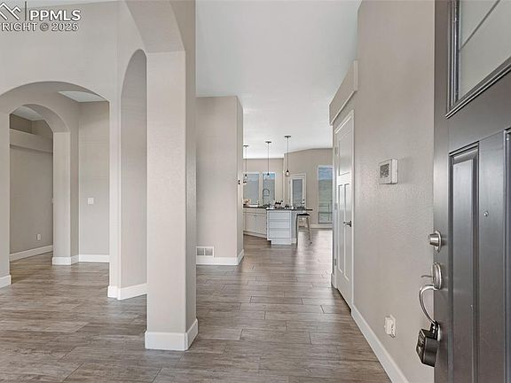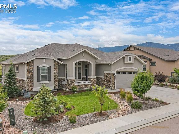 Immaculate ranch in the beautiful and highly desirable Forest Lakes sub division. Breathtaking mountain and lake views. This home has it all! Enjoy the views on the large covered deck, wired for ceiling fan with gas stub outs and stairs to walk down to the large covered patio. Patio has gas stub out also. Take in the professional custom landscaping that surrounds you. Over 4600 fully finished square feet. All TV mounts stay with home. 5 bedrooms and 4 full baths, junior master sweet in basement. Updated features include newer paint and new carpet! The large 3 car garage has a 6 foot extension. Across from park & gazebo. Minutes to I-25, shopping, restaurants, and more!