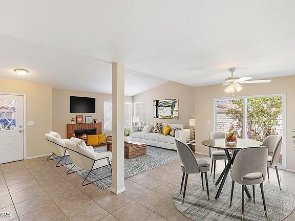 NO HOA*Large corner lot in the desired Green Valley Area w/gated backyard offering potential RV parking, covered patio & plenty of space to create your dream yard. The formal dining room or family room features a slider door perfect for entertaining plus sliders off the kitchen open to the covered patio for seamless indoor-outdoor flow. The living room showcases a vintage brick fireplace adding character. The kitchen includes a cozy breakfast nook, pantry cabinet &a larger dining area for family meals. The primary bedroom has two closets and a custom spa-like shower w/a medicine cabinet providing extra toiletry storage. The hall bathroom offers plenty of counterspace for an extra getting-ready area, and a charming hallway nook is ideal for a coffee/expresso bar or decor display. Tile flooring, blinds & ceiling fans are thruout & laundry room has extra cabinets for storage. Great starter home, priced right based on a recent pre-listing appraisal*Under 3 miles from Green Valley District