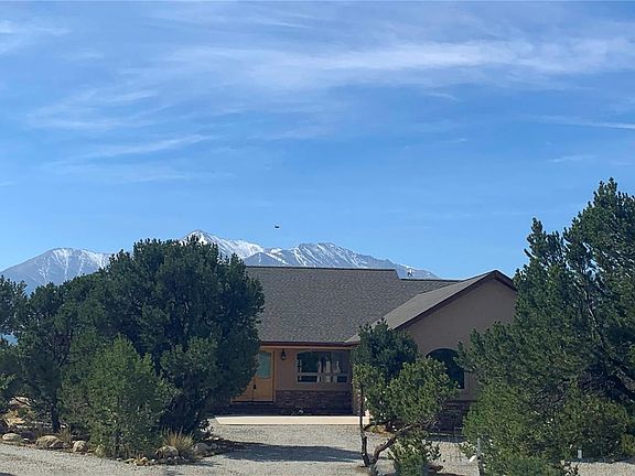 Stunning Views on 3.49 acres. This home is very conveniently located just 2 1/2 miles North of Buena Vista in a wonderful community of Elephant Rock, known for its treed lots for privacy and amazing views we all move here to enjoy. There is a convenient walking path down to the Arkansas River. The home is mostly maintenance free on the exterior with stucco and rock, stamped concrete on the front covered patio. Colored concrete on the back patio that goes out from the kitchen/great room, master bedroom and also the 2nd bedroom has a nice trex composite deck area on the SW side with the views. As you enter it has a large foyer area with beautiful custom tile, a large office with views of Elephant Rock. Your entertaining area has a warm rock gas fireplace, large windows, beautiful kitchen nook, bar area, and butlery for your coffee & refreshments, vented electric stove, wall oven, warming drawer and microwave. Knotty Alder wood doors and trim throughout. The master bedroom is very spacious with walk in shower handicap accessible, separate vanity areas and walk in closet. The master has french doors that walk out to the covered back patio. 1/2 bath conveniently located off the entrance and great room. The split floor plan on the other side has the 2 bedrooms, full bath with jacuzzi tub and utility room with wash sink. The garage is oversized 730' 2 car with work bench and 4 enclosed cabinets for storage. For Energy Efficiency this home also has 6.24K solar panels. The panels are nicely hidden in the piñon trees. Augmented well for your lawn and garden. The 8x10 storage shed is included. The back views are unobstructed with no lots behind this home. Call now for a private showing. More pictures to come within the next few days.
