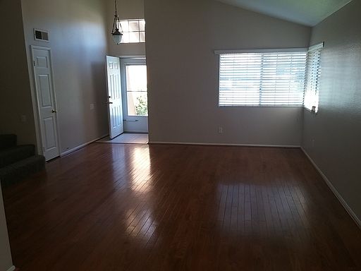 Beautiful Temecula Home on Cul-de-sac street Lovely home on cul-de-sac street in well established Temecula neighborhood with on street parking. Open floor plan with spacious cathedral ceilings and beautiful wood floors on the ground level. The stairs and 3 bedrooms upstairs are all carpeted wall to wall. The master bedroom has large mirrored closet and cathedral ceiling. The backyard is shaded by a mature tree. The large 3 car garage has a work bench with many extra cabinets. Available mid-September. Call 951-308-1917 for more info.