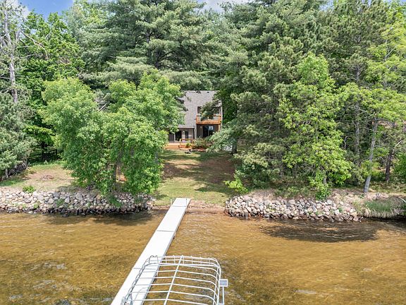 Lakefront Retreat on Lower Webb Lake – First Time Ever Offered! Come experience the best of lake life at this well maintained, one-owner property on highly sought-after Webb Lake. Nestled on a private, wooded dead-end road, this home offers tranquility, privacy, and some of the finest shoreline the lake has to offer. Enjoy level access to a gently sloping, sandy shoreline-perfect for swimming, boating, or for the kids to play. The west-facing views provide stunning sunsets year-round, ideal for unwinding on warm summer evenings or peaceful winter nights. Inside, the home features 2 bedrooms plus a spacious loft, easily convertible into a third bedroom. The oversized two-car garage includes dual garage doors for easy lake access and a generous workspace. Above the garage, a loft area awaits your finishing touch-perfect for a bonus room, bunk space, or overflow guest accommodations. Bring all your toys! The property also includes a 24x40 pole barn with concrete floors, electricity, and a 12-foot-high door designed to fit most RVs. There's ample room for boats, ATVs, trailers, snowmobiles, lawn equipment & more. Included in the sale is a 2017 ShoreMaster powered pontoon lift & dock, ready for your summer adventures.