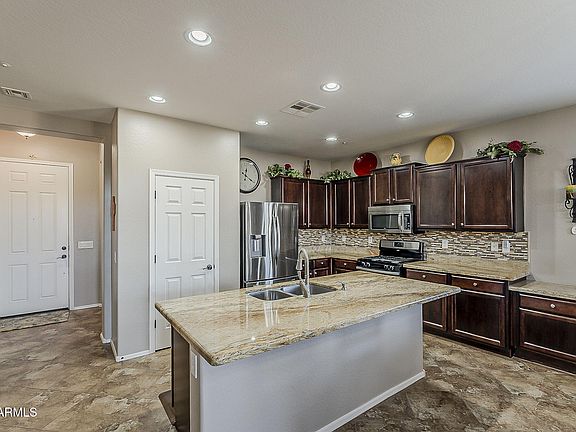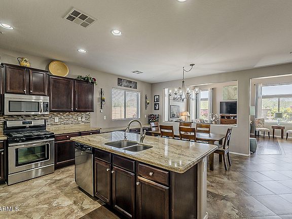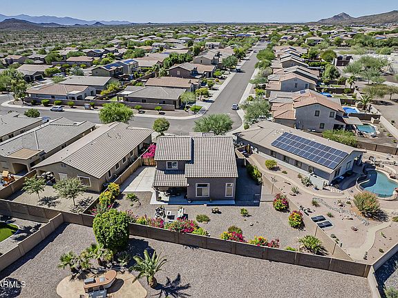 Looking for a well maintained and updated home that offers privacy and a rare RV GATE and SLAB in the #1 Master Planned Community in the valley? This 4-bedroom, 3-bath, 2,439 sq. ft. home sits on a premium 8,978 sq. ft. pie shaped lot with a 3 car garage & mountain views. The home features a gourmet kitchen with granite counters and stainless steel appliances, 9+ ft ceilings, and a spacious two-story layout. Recent updates include new interior paint (2023), exterior paint (2024), a new HVAC system (2022), and updated irrigation (2024). The backyard offers a covered patio and plenty of space to reimagine it with a pool, sport courts, hot tub, pergola or one of each!! Walkable to community pool, trails, park, tennis courts, pickleball and more!