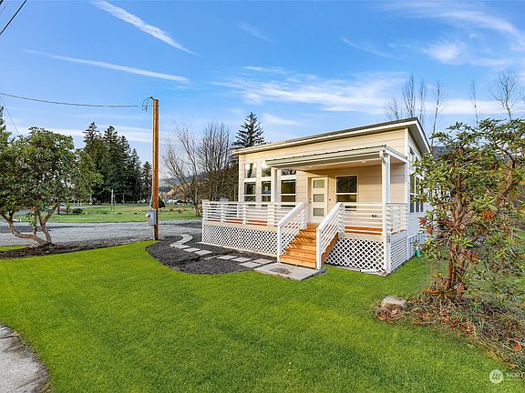 This stunning single-level home offers breathtaking views of the Skagit River and surrounding mountains. The kitchen features a spacious island, quartz countertops, and ample cabinets. The open floor plan maximizes natural light with large windows framing the scenic vistas. The living area seamlessly connects spaces, perfect for entertaining or everyday living. Conveniently located near a park and trails. Situated in a friendly community, this modern home promises comfort and elegance. Don't miss the chance to make it your dream retreat.