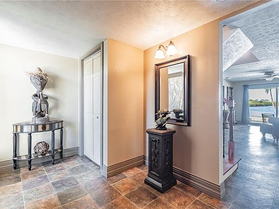This home is what the Florida life style is all about. Watch manatee and dolphin right from your own patio or balcony. Water views throughout the home are breath taking. Boater and fishing life made easy with a short canal trip right into Tampa Bay and your very own covered private dock with lift. Pride in ownership shows throughout the home. Kitchen was renovated with oak counter tops and a granite island in 2019. Custom bathroom with redwood slab floating counter is stunning and unique. Large 2nd and 3rd bedrooms. All bedrooms have an en-suite. Ceiling fans and central vacuum throughout. Window tinting 2020, new water heater 2018, garage floor coated 2019. Outside is maintained with care. The pool was built by Natural Springs Pools in 2018, new siding and paint completed in 2017, metal roof was refreshed 2019, flat roof replaced 2020. Sprinkler system and sod were refreshed in 2018. Landscaping extensive with mature palms and fruit trees lime, tangelo, pink lemon and grapefruit.