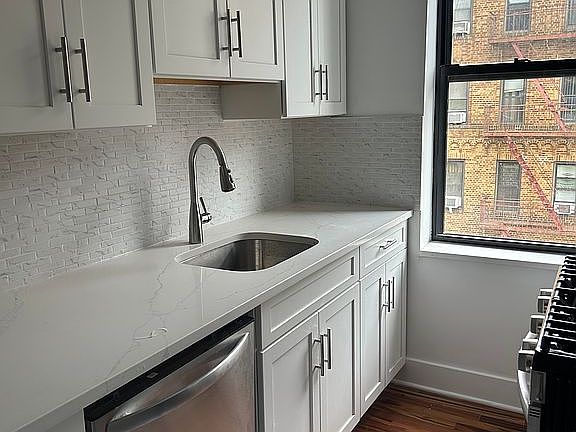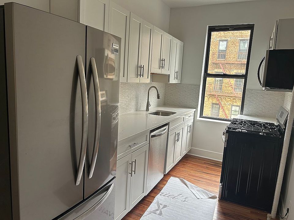 -Freshly renovated apartment with new kitchen appliances, bathroom fixtures, and finishes.