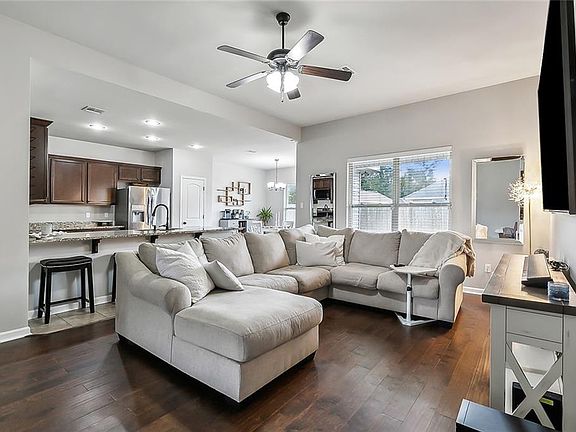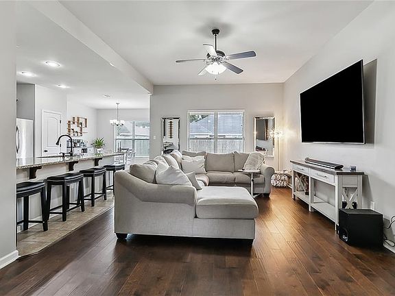 Welcome to this charming Ashton Oaks home, built in 2018. Enjoy an open-concept layout with a seamless flow between the kitchen and living room, featuring additional barstool seating at the counter for casual dining and entertaining. The kitchen has granite countertops and stainless steel appliances with a designated dining area framed by windows and a glass door to the backyard. The interior is painted neutral throughout with lots of natural light, providing a move in ready feel- just waiting on personal touches. The primary bedroom offers an ensuite bathroom with a walk in closet. New carpet. Outside, you'll find a well-maintained garage, landscaping, a fenced yard for privacy with rear yard access, and a cozy patio for outdoor enjoyment or entertaining.