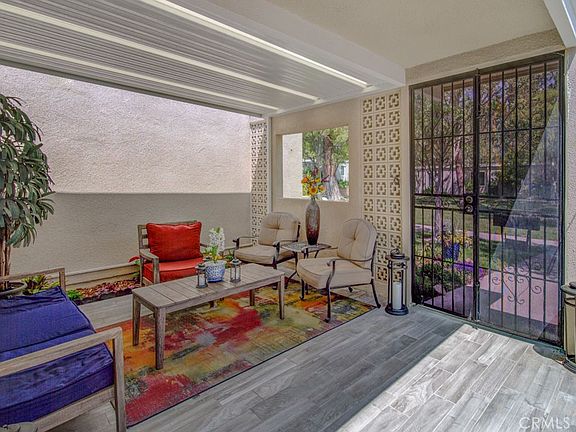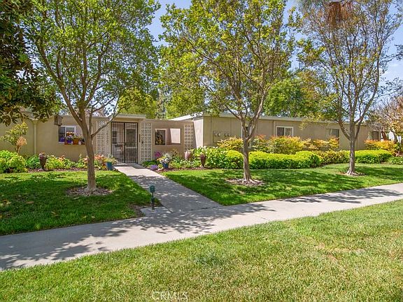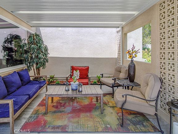 Welcome to 313-C Avenida Castilla – a gorgeous remodeled “Cordoba” residence in the Laguna Woods senior community. This home is situated in a quiet cul-de-sac far from busy roads and noisy highways. Guests entering the property will appreciate the beautifully landscaped front entry, the iron gate opening to the large front patio and the stylish Dutch door entry to the residence. The large front patio with beautiful tile flooring is partially covered allowing for all-weather outdoor entertaining, dining and relaxing. There is a lovely view from the patio of an expansive, immaculately landscaped greenbelt area. The Cordoba floorplan is a two-bedroom, two-bath single-level residence with approximately 1300 sq. ft. of living space. The gourmet kitchen boasts stainless steel appliances, brushed leather granite countertops, hardwood cabinets, lazy susans, skylight and lots of cabinet storage. An island with seating capacity for up to three separates the kitchen from the spacious living room. The fully-enclosed atrium, separated from the living room by sliding barn doors, is a multi-purpose space with built-in cabinets and shelving and a skylight. Currently used as a home office, this room with sliding barn doors for privacy could also serve as an arts and crafts room, yoga studio or any number of other uses. The master bedroom has ample storage capacity with mirrored closets and a built-in dresser. Both bathrooms are fully remodeled with granite countertops, newer cabinetry and solar tubes. The flooring is tasteful low-maintenance wood laminate. A full-size stackable washer-dryer is conveniently located in a hall closet. Additional features throughout include dual-pane windows, smooth ceiling, crown molding, recessed lighting and ceiling fans in the living room and enclosed atrium. In addition to the nearby assigned carport (with additional storage cabinets), there is ample parking for guests in the cul-de-sac. Do not miss this spectacular home!