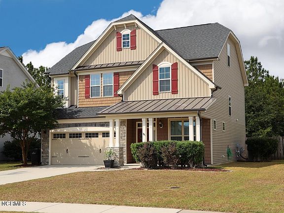 Welcome to your dream home nestled in the heart of a quaint and welcoming community. This enchanting residence boasts a beautiful 2-story floor plan and features 4 bedrooms, 2.5 baths, and a versatile unfinished 3rd floor bonus room with plumbing and electrical installed, offering endless possibilities for expansion. Step inside and be captivated by a dramatic foyer, office/flex room with French doors, with elegant, coffered ceiling. The gourmet kitchen offers plenty of cabinet space, stainless steel appliances, GRANITE countertops, and a large center island, with a pantry, wet bar, and kitchen nook. The main level features an open layout, perfect for everyday living and entertaining, with beautiful wood flooring. Retreat to the tranquil primary suite with tray ceiling, primary bath features 2 separate vanities, soaking tub, walk in shower, and private restroom. Additional bedrooms are generously sized with plenty of closet space. Enjoy evenings under your pergola in your backyard oasis. Easy access to the beach and convenient to shopping, dining, and golf courses. The Neighborhoods of Holly Ridge is only a short commute to Camp Lejeune, MARSOC, and New River Air Station. Don't miss the chance to make this charming home your own!