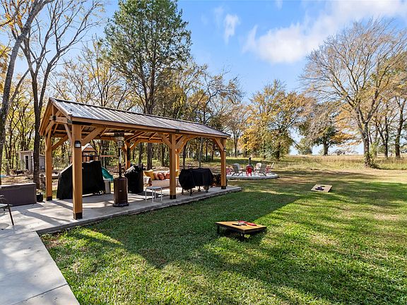 Stunning 2023 custom one-story home on a beautifully treed .72-acre lot in the gated waterfront community of Cedar Creek Landing! This newer neighborhood offers an amazing lake lifestyle with an infinity-edge pool, clubhouse, fitness center, boat launch, stocked fishing pond, day-use marina, golf-cart access to Cedar Creek Country Club (memberships available), city-maintained roads, fiber-optic internet, and fenced boat storage—ALL less than an hour from Dallas! Thoughtfully designed, this 3,120 sq. ft. property features a 2,800 sq. ft. 3-bedroom, 2.5-bath main house with game room plus a private 320 sq. ft. 1-bedroom, 1-bath guest suite—ideal for multigenerational living or weekend visitors. Both the living area and primary suite open to the screened porch across the back of the home, creating a wonderful indoor-outdoor extension. The cedar-finished gazebo offers space for grilling and gatherings, and the stone firepit area provides more opportunities for outdoor living. Inside, enjoy travertine floors throughout (no carpet), vaulted ceilings with wood-beam accents, and an open-concept kitchen and living area with a large island, black stainless appliances, a range with oven plus separate wall oven, built-in microwave, and oversized pantry. The primary suite includes a luxurious soaking tub, double-entry walk-in shower, generous walk-in closet, and peaceful backyard views. Bedrooms 2 and 3 share a Jack-and-Jill bath with separate vanities, and the half bath opens directly to the screened porch—perfect for entertaining and everyday convenience. Additional highlights include a tankless water heater, large floored attic storage, sprinkler system with well-designed French drain, transferable lifetime foundation warranty, and a nice laundry room with large stainless sink. Store your boat in the community’s fenced storage area and launch at the neighborhood ramp with day-use slips.