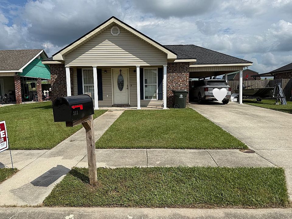 This 3 bedroom, 2 bath home includes a living room, kitchen/breakfast area and laundry room. The living room has a tray ceiling. The kitchen has ceramic tile countertops and flooring. The master bedroom has a tray ceiling and the master bathroom has ceramic tile countertop and floors with a fiberglass tub/shower combo. The exterior is brick and vinyl siding. There is a front porch and a single car carport.