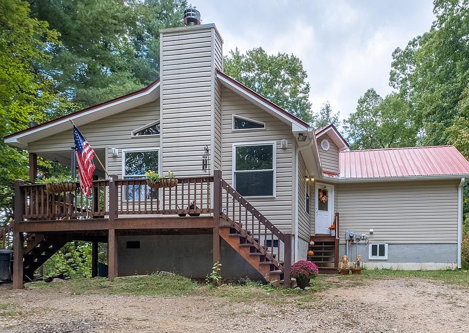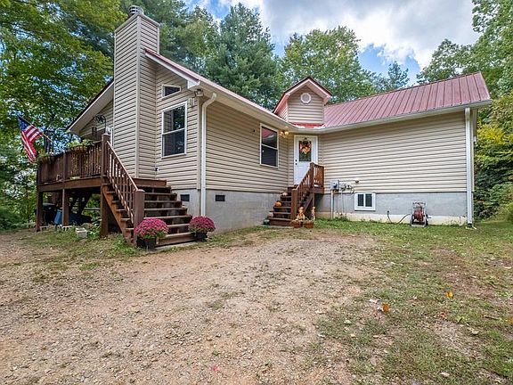 This 2 bed/2 bath home in the Dogwood community of Hanging Dog needs minimal maintenance with a metal roof and vinyl siding. Inside you'll be delighted with many upgrades! Enter your foyer leading to your Great Room with a wood vaulted ceiling, wood flooring, French doors leading to your back porch, and a wood-burning fireplace to warm the chilly mountain evenings. Your brand-new kitchen has sleek gray cabinets and complimenting granite countertops. Stainless appliances include a gas range and island/breakfast bar. Down the hall are your laundry, guest bed, and bath with granite-topped vanity. Your Master Ensuite has a tiled shower and granite-topped vanity. Wood flooring throughout, tile floors in bathrooms. Outside shed/workshop all sitting on over an acre of wooded privacy!