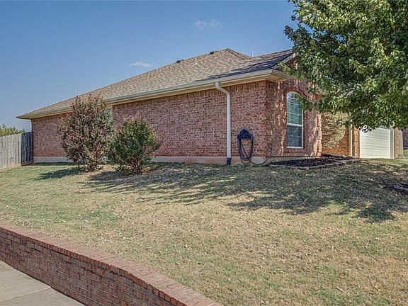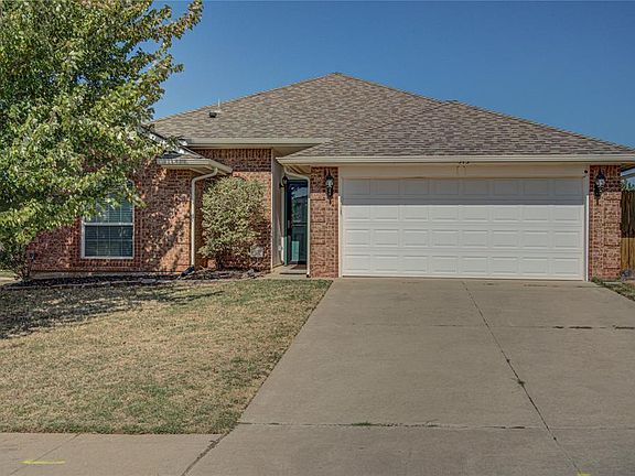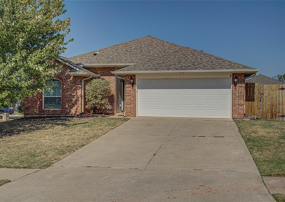 Welcome to this charming three-bedroom, two-bathroom home that sits perfectly on a spacious corner cul-de-sac lot. Step inside to discover fresh paint brightening the main living areas and new carpet that's still got that satisfying bounce under your feet. The heart of the home features a cozy gas log fireplace that promises to turn even the chilliest Oklahoma evenings into warm, memorable moments. The kitchen boasts a convenient pantry and breakfast bar, perfect for quick morning coffee or leisurely weekend brunches.