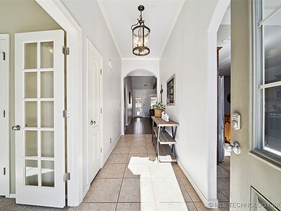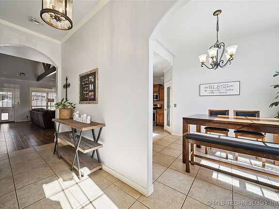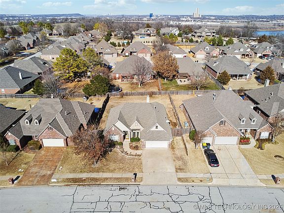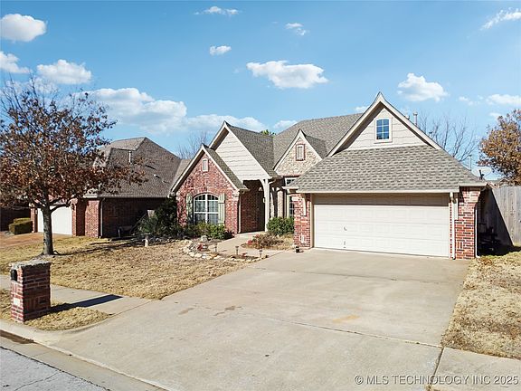 Nestled in the highly desirable Valley View Ridge subdivision in Jenks, this stunning 4-bedroom, full brick home was once the model home. At 2200 sqft (AP), it boasts an inviting entryway with wood-look tile floors throughout. There is also a new HVAC system! The spacious living area features a vaulted and beamed ceiling, a cozy fireplace, a wall of windows, and an open layout that flows seamlessly into the kitchen. The kitchen is equipped with an eating bar, island, stainless steel appliances, pantry, and an oversized nook. The master bedroom impresses with a dramatic tray ceiling and ample space for large furniture. The master bath offers double vanities, a relaxing whirlpool tub, and a separate walk-in shower. Completing the floor plan are two additional bedrooms, a full bath, and a versatile office with a closet that could serve as a fourth bedroom. The backyard is perfect for entertaining with its covered patio and generous space. Plus, the neighborhood pool is just around the corner. Homes in this sought-after neighborhood are rarely available, so schedule your showing today!