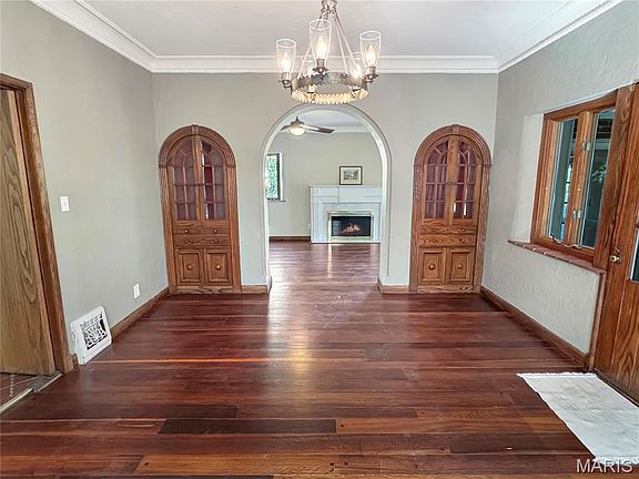 Straight out of an architectural magazine, this Full Brick Colonial is a signature home in Downtown Washington and boasts some of the most exquisite design details & masonry work you'll find in our Charming Town! From the arched wood front entry door, you are welcomed to a Grand foyer with arched interior doors, curved staircase, half bath, & closet. The Foyer leads to Kitchen & basement as well as sunken Great Room, which opens to the Sunroom, Foyer and Dining Room. The great Room serves as the Hub of the house with a fireplace, built-in bookcase, and great natural light. The Sunroom leads to the large Covered Porch with curved staircase to sidewalk & patio area. The Dining Room connects the Covered Porch, Great Room, and butler pantry off the Kitchen. The Butler Pantry could offer a few different potential uses with a window and built-in cabinet. The Kitchen offers an exterior door to sidewalk, window above the sink, a walk-in pantry, and tons of character. Up the curved staircase, the second floor offers 2 large spare bedrooms and a rough-in bath, in addition to the Primary Suite. The Bedroom suite is spacious and features a deck, full bathroom, and walk-in closet. The 3rd Floor could serve as a Bonus Room with bathroom or 2nd Bedroom Suite. Bonus Storage area on 3rd floor as well. Basement offers a garage, family room area, laundry room, & utility room. Outside, the driveways and sidewalks around the home are in great shape and provide wonderful access to all parts of the exterior. Backyard offers tons of potential as it backs to trees, overlooks Riverfront trail, and ample grass area. This Property IS TRULT ONE OF A KIND! The Brickwork alone will have you in love with this place, but the comfortability along with elegance can't be understood besides in person. Schedule Your Tour TODAY, because you won't want to miss out!