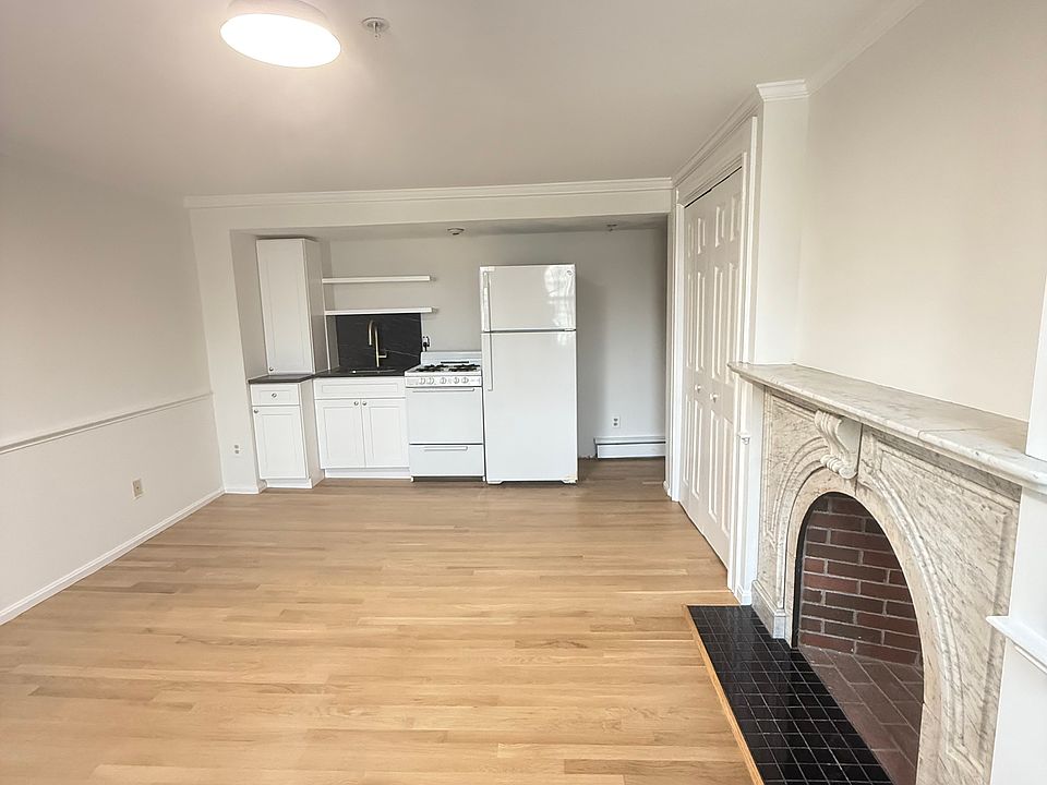 Owner pays heat, hot water, electric, water/ sewer, basic trash. Shared coin op washer and dryer in the basement. No smoking of any type in the unit or on the property. One year lease. First and last due at lease signing.