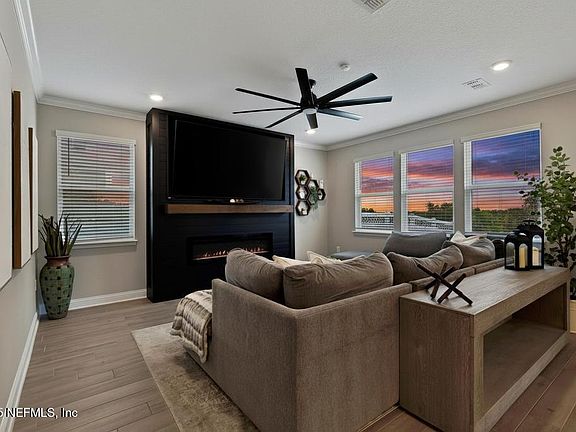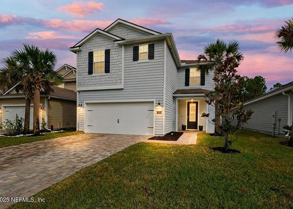 Outdoor upgrades include pavers, a screened-in back porch, and a fully fenced yard. The garage has built-in shelves and an electric vehicle chargerFrom your front door you can walk to the Amazing Amenity Center with pools, parks, and recreation an easy part of daily life.