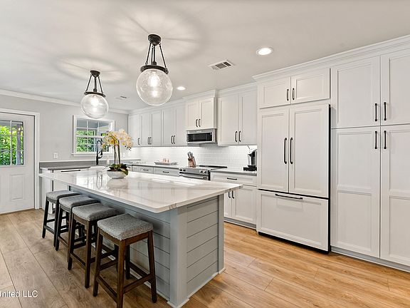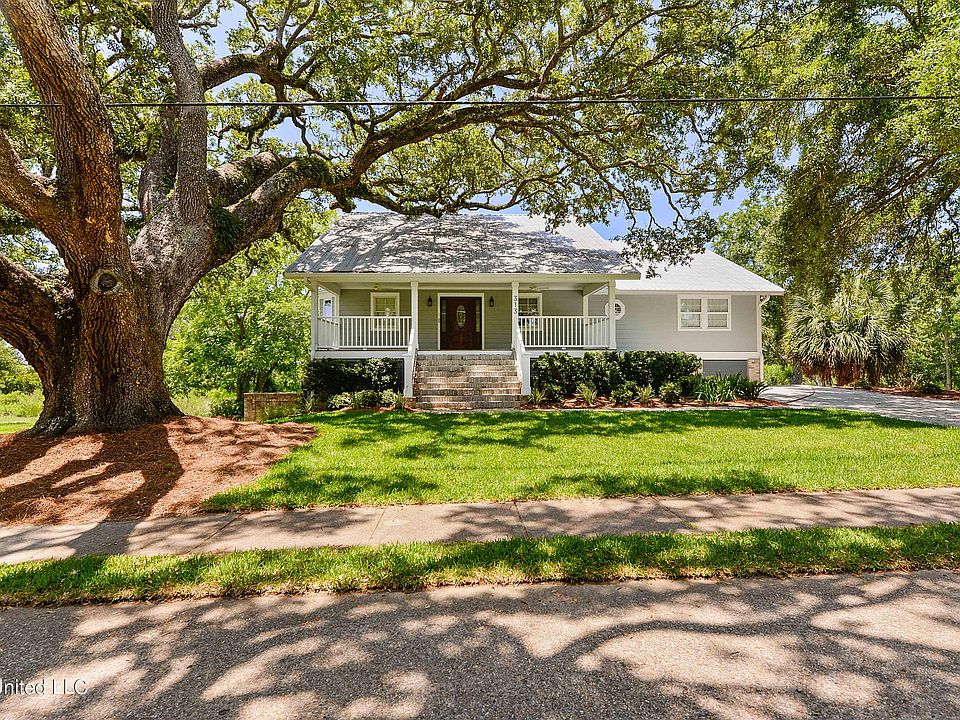Ready to live in Paradise? Your search is over! This totally custom renovated home is less than a block from the beach and located on one of the most sought after streets in Downtown Ocean Springs with beautiful oak trees. Enjoy the views of the beach from the covered front porch or back deck. Open floor plan with gas fireplace, formal dining area, exquisite kitchen that boasts a large center island, built in appliances that includes a wine/beverage cooler. On the first level you will find 3 full bedrooms and 3 full baths, there are 2 possibly 3 primary suites in this gorgeous home one has a bonus/office room adjacent. Upstairs has a large bedroom and another full bath. The current owners spent over 2 years renovating this home and are now ready for you to call it home, do not wait, call now! Agents please read agent remarks before contacting listing agent.