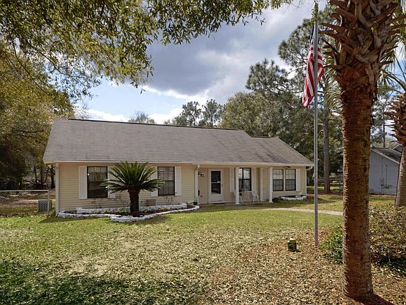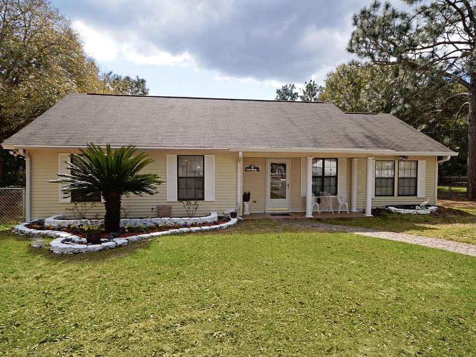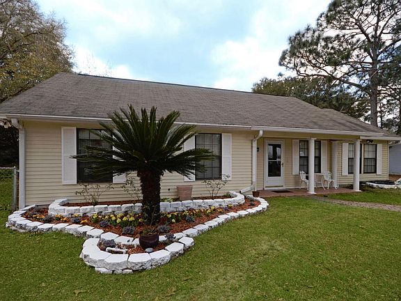 1536 Sq. Ft. 3 Bedroom 2 Bath home with a 4-CAR DETACHED GARAGE/SHOP. Located on the South side of Crestview. Home has great curb appeal, with special paver brick walk-way joining the driveway, edging for landscaping. The Family Room has a Vaulted Ceiling. Multiple interior upgrades: expanding living area, den and kitchen. Much to offer with recessed lighting, laminate wood flooring and beautiful white columns dividing the two rooms. Moving on to the cozy formal dining room you will enjoy the recessed lighting there as well. The kitchen and dining area both have tile flooring. The kitchen has been updated with a tiled back-splash. The hall bath wall has also been updated with tile. Ceiling fans are throughout the home. In 2005 there has a 220 sq foot Florida Room added to the back.
