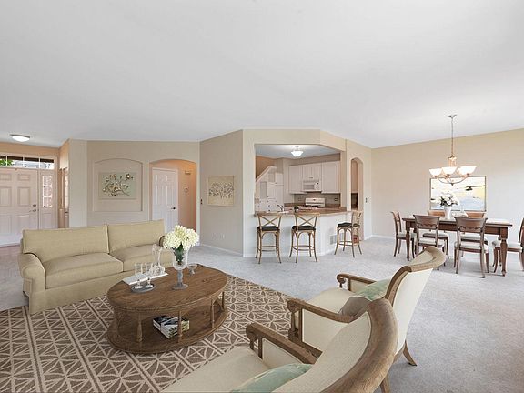 SUNNY AND BRIGHT DUNHILL MODEL SITS ON A PREMIUM LOT BACKING TO A SCENIC POND! THIS LOVELY OPEN AND SPACIOUS HOME FEATURES AN OPEN FLOOR PLAN, BOASTS AN OPEN FLOOR PLAN WITH 9' CEILINGS ON THE FIRST FLOOR AND 10' VOLUME CEILINGS ON THE 2ND FLOOR, WHITE TRIM & DOORS + FRESH PAINT AND NEW CARPET! COVERED FRONT PORCH LEADS INTO AN INVITING FOYER WITH HARDWOOD FLOORING AND EXPANSIVE LIVING ROOM W/FIREPLACE, TONS OF WINDOWS, OPEN DINING ROOM THAT OVERLOOKS A LARGE WHITE KITCHEN WITH BREAKFAST BAR, DOUBLE SINK, PLETHORA OF CABINET AND COUNTER SPACE, PANTRY, HARDWOOD FLOORING + ALL APPLIANCES STAY. 1ST FLOOR GUEST POWDER ROOM + 2ND FLOOR LAUNDRY ROOM ~ 2ND FLOOR LOFT WITH VOLUME CEILING COULD BE PERFECT FOR A HOME OFFICE, DEN, OR FUTURE 4TH BEDROOM + HAS A PRIVATE BALCONY. IMPRESSIVE AND ENORMOUS MASTER SUITE WITH SITTING ROOM, BRIGHT WINDOWS, HUGE WALK-IN CLOSET, PRIVATE BATHROOM W/COMFORT HEIGHT DOUBLE SINKS, WATER CLOSET, VAULTED CEILING + TILE FLOORING ~ 2ND AND 3RD BEDROOMS WITH VAULTED CEILING, DOUBLE WIDE CLOSETS, AND BRIGHT WINDOWS ~ FULL FINISHED BASEMENT W/REC ROOM WITH BUILT-IN SHELVING, WET BAR, MEDIA ROOM + STORAGE CLOSET AND HUGE MECHANICAL ROOM WITH EXTRA STORAGE, UTILITY SINK, AND WATER SOFTENER. ATTACHED 2 CAR GARAGE WITH EPOXY FINISHED FLOORING, BUILT-IN SHELVING + 8' HIGH GARAGE DOOR ~ ATRIUM GLASS DOOR TO PRIVATE PATIO AND RELAXING VIEW OF THE POND. IDEAL LOCATION NEAR COMMUNITY PARK, PRAIRIE PATH, SCHOOLS, DELNOR HOSPITAL + RANDALL ROAD SHOPPING, DINING, DOWNTOWN GENEVA, GENEVA, AND ELBURN METRA STATION! QUICK CLOSING AVAILABLE!