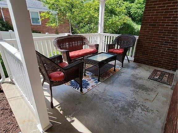Welcome Home to this Charming Move-In Ready brick ranch on quiet dead end street!. Covered front porch. Hardwood floors first floor. Freshly painted first floor. White kitchen w/SS appliances, lots of cabinets. Newer Furnace 2017. Finished walk-out basement/lots of storage/huge laundry utility room. Level private yard. Large deck overlooks level yard and green space. Extra parking pad under deck. Lovely stone patio off lower level.