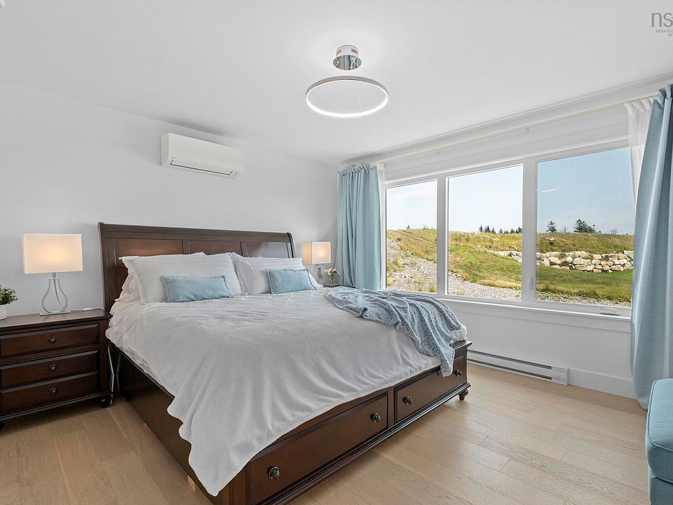 Welcome to 313 Marketway Lane—a beautifully maintained, custom-upgraded home backing onto the 16th hole of the award-winning Links at Brunello golf course. Offering stunning views and a host of premium features, this property is just 15 minutes from downtown Halifax and delivers both elegance and energy efficiency, thanks to solar panels that offset most of the home’s energy needs. Enjoy year-round comfort with three Daikin heat pumps, engineered hardwood flooring, custom lighting, and hardwood staircases throughout. The main level impresses with 9-foot ceilings and natural light that fills the open-concept living space. A chef’s dream, the kitchen boasts a 13-foot island with waterfall edge, full-height cabinetry with glass uppers, and high-end LG stainless steel appliances. The living area features a stylish fireplace and opens to a 20-foot wide deck overlooking the golf course—ideal for entertaining. Upstairs, the luxurious primary suite includes a walk-in closet and spa-like ensuite with soaker tub, double vanity, and breathtaking views. Two additional bedrooms, a full bath, and convenient upper-level laundry complete the floor. The entry level offers a dramatic double-height foyer with 7-foot crystal chandelier, a spacious rec room, and an attached garage with Tesla charger. Walk to the clubhouse, enjoy year-round recreation, and explore nearby shops, restaurants, and schools. This is a rare opportunity to live in one of Brunello’s most sought-after locations.